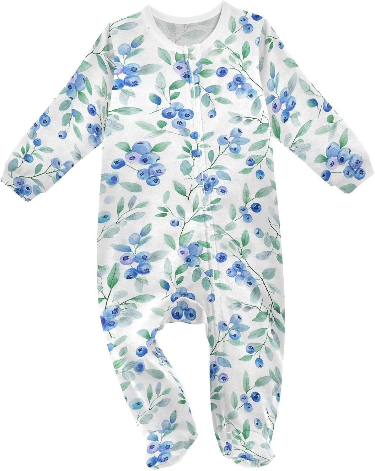 Dussdil Blueberry Leaves Baby One-Piece Footies Boys Girls Newborn Rompers Pajamas Cotton Footed Pjs