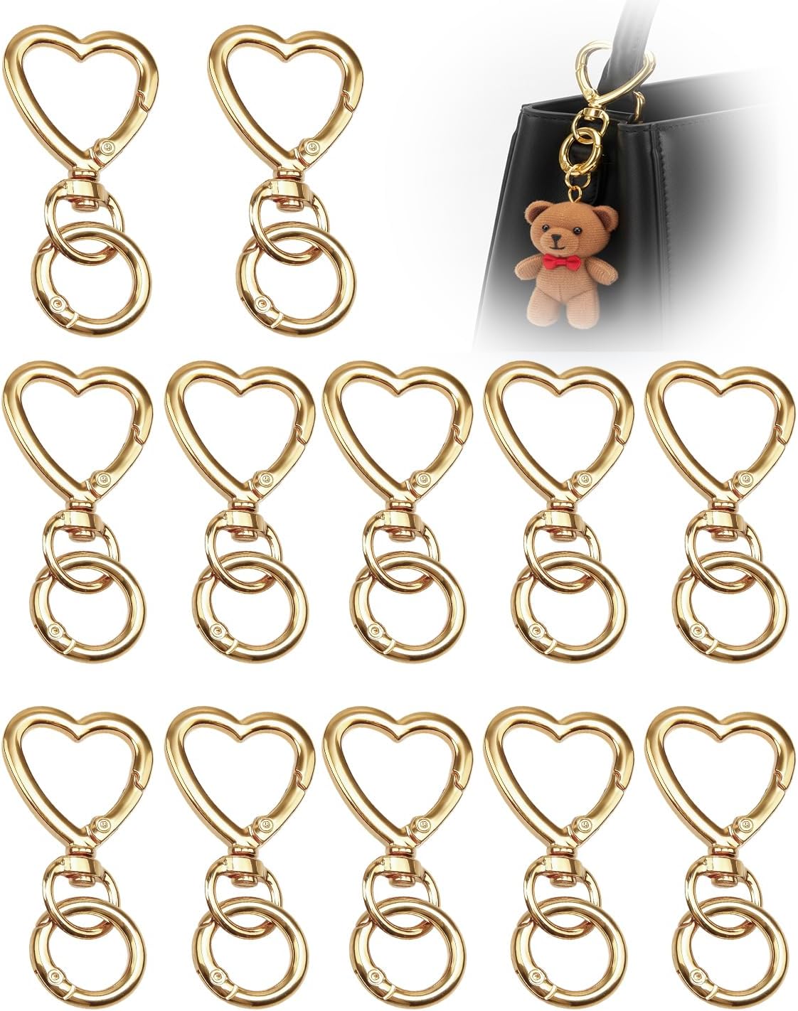 - Package Includes: Receive 12 pieces of heart-shaped double opening snap hooks in a stylish gold finish, ideal for organizing keys, ID badges, small accessories, or DIY projects at home, work, or during travel. Each clip features a secure lobster clasp design for reliable everyday use.