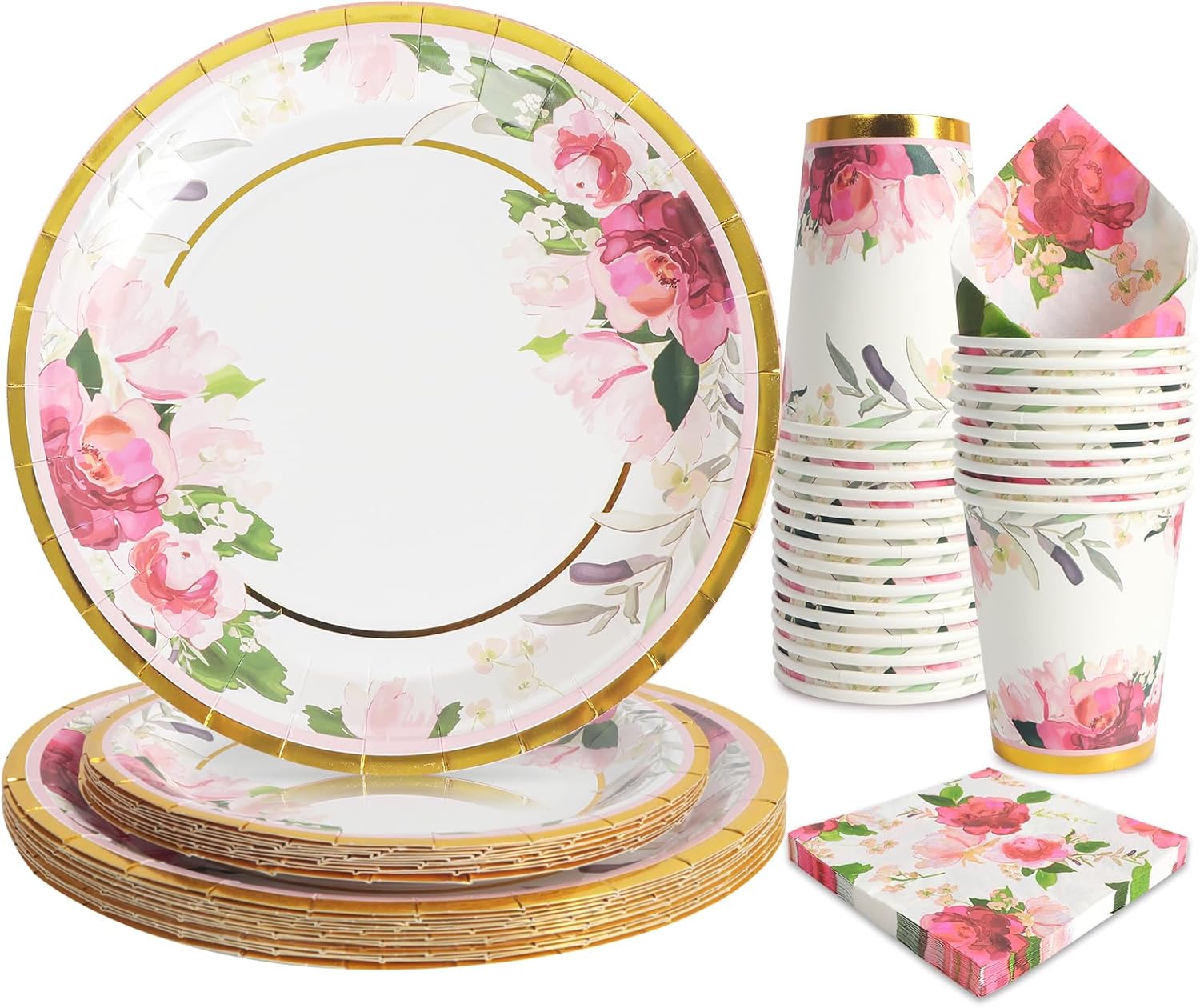 - Elegant Floral Design: Elevate your party with our exquisite and elegant floral party paper plates, featuring delicate floral designs that bring enjoyment to any occasion. Perfect for birthday, bridal showers, tea time, etc. These disposable pink floral paper plates combine practicality with timeless charm