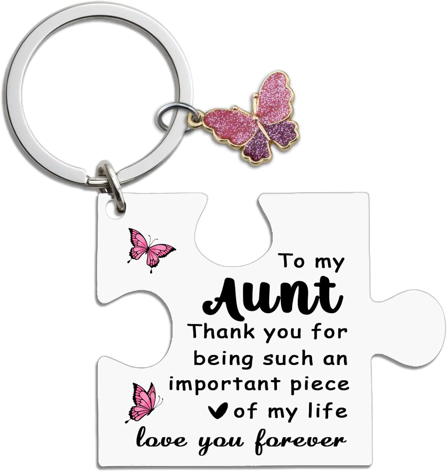 Aunt Gifts From Niece Nephew Auntie Gift Ideas Aunt Birthday Gifts for Women Best Aunts Ever Gift for Aunts Unique Puzzle Butterfly Keychain for Auntie Mother's Day Present