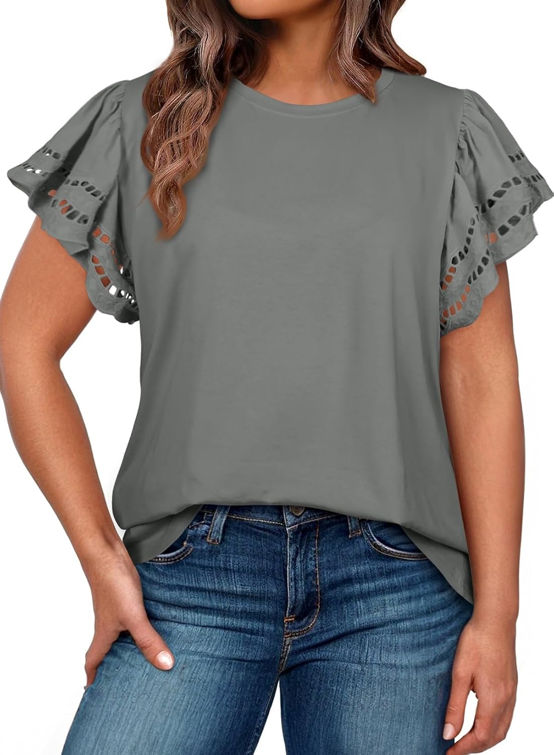 Eytino Womens Plus Size Tops Short Sleeve Round Neck Hollow Out Casual Loose Tunic Tees Shirts(1X-5X)