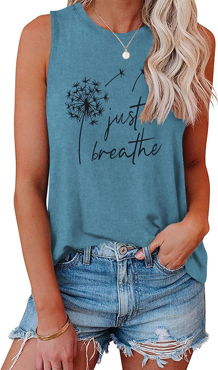 JOELLYUS Womens Tank Tops Summer Casual Crew Neck Sleeveless Top Loose Fit Basic Tunic Shirts