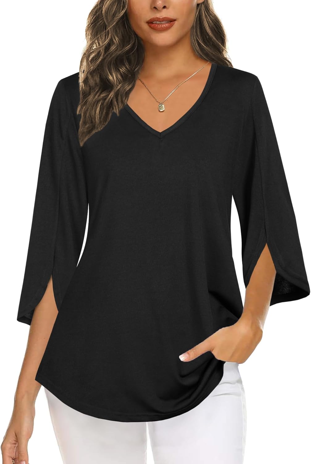 Tencole Womens Tops 2025 Summer Trendy Dressy Shirts 3/4 Sleeve Blouses Tunic V Neck Casual