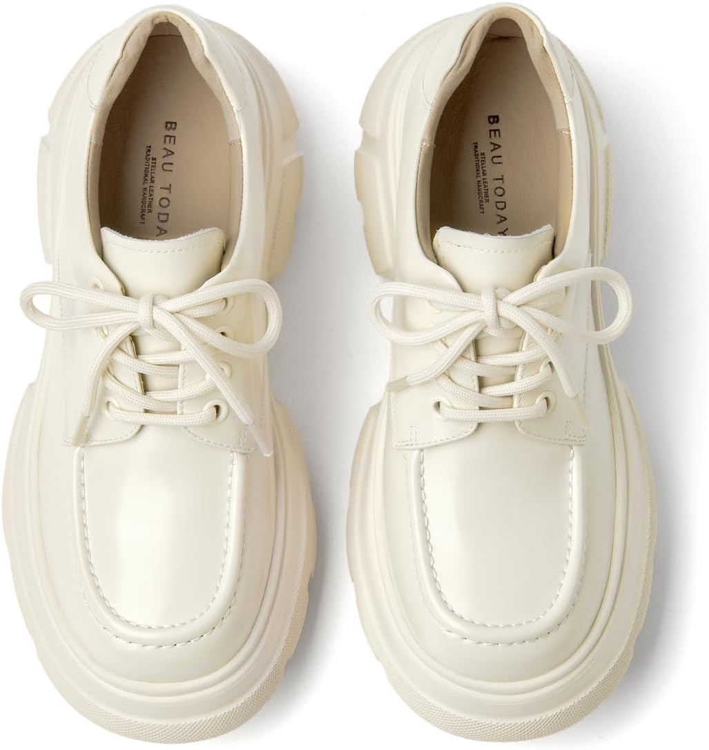 BEAU TODAY Women's Platform Oxfords, Chunky Work Oxford Shoes for Women, Business Casual Leather Shoes Women, Comfortable Non-Slip Round Toe Dressy Shoes
