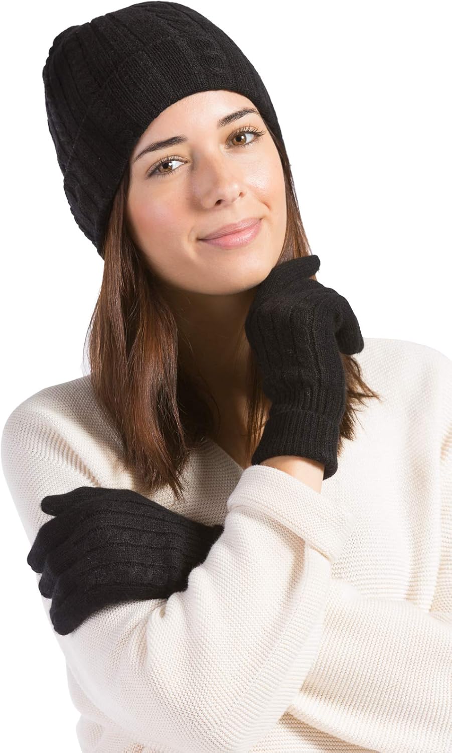 Fishers Finery Women's 100% Pure Cashmere Hat & Glove Set with Exquisite Box