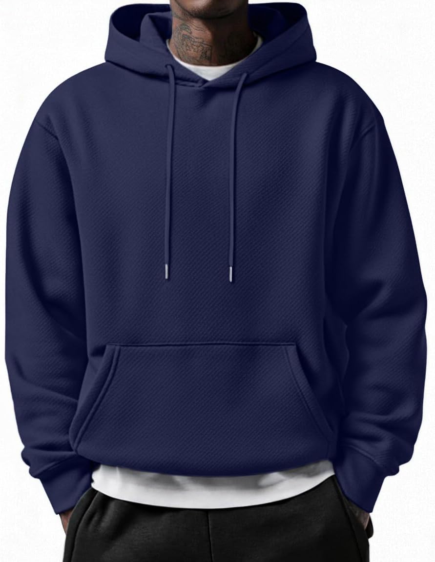 COOFANDY Men's Long Sleeve Hooded Sweatshirt Casual Lightweight Hoodies Pullover Textured Drawstring Hoodie with Kanga Pocket