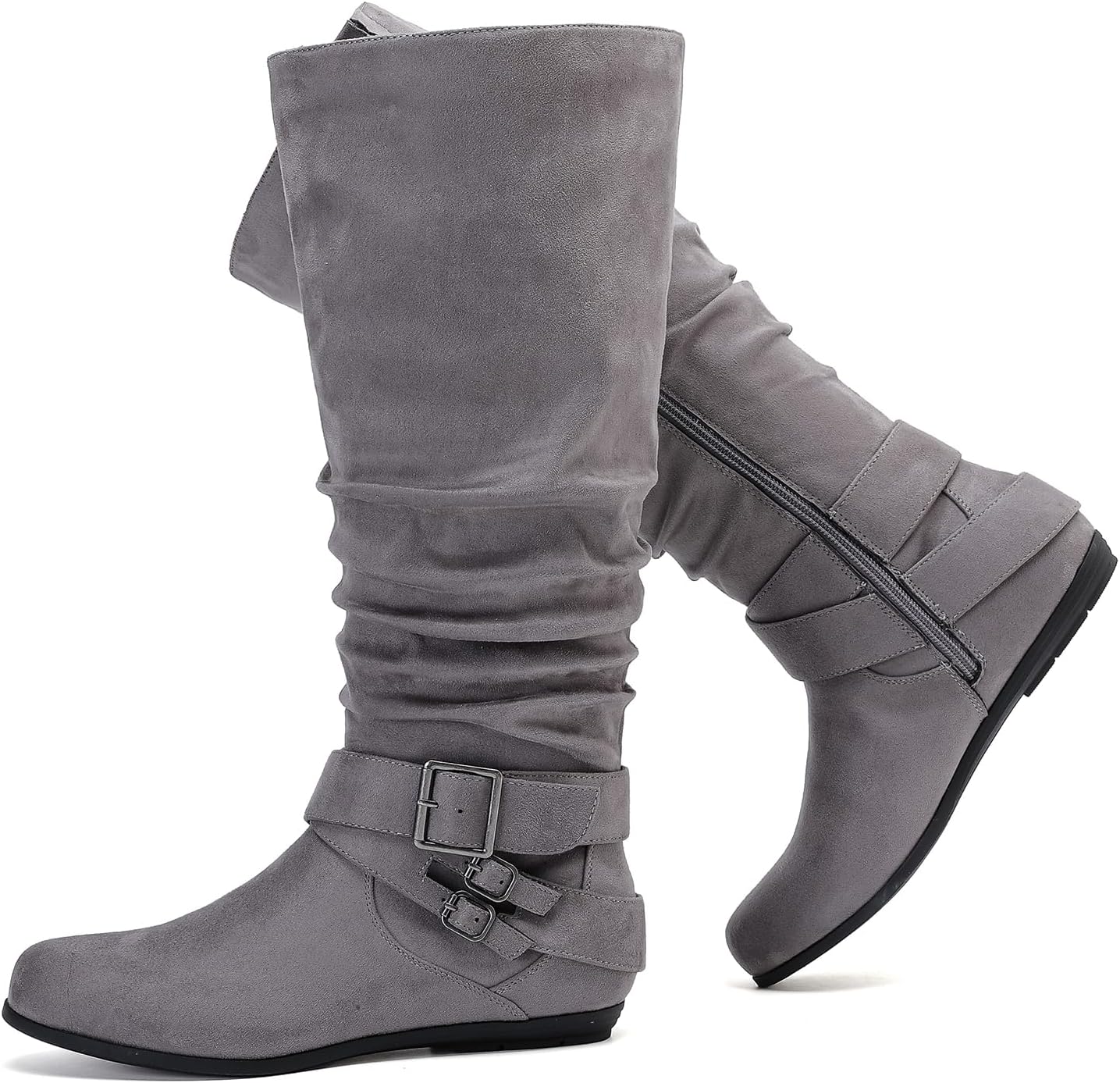 Luoika Women's Extra Wide Calf Knee High Slouchy Boots, Wide Width Tall Boots with Flat Heel Side Zipper.