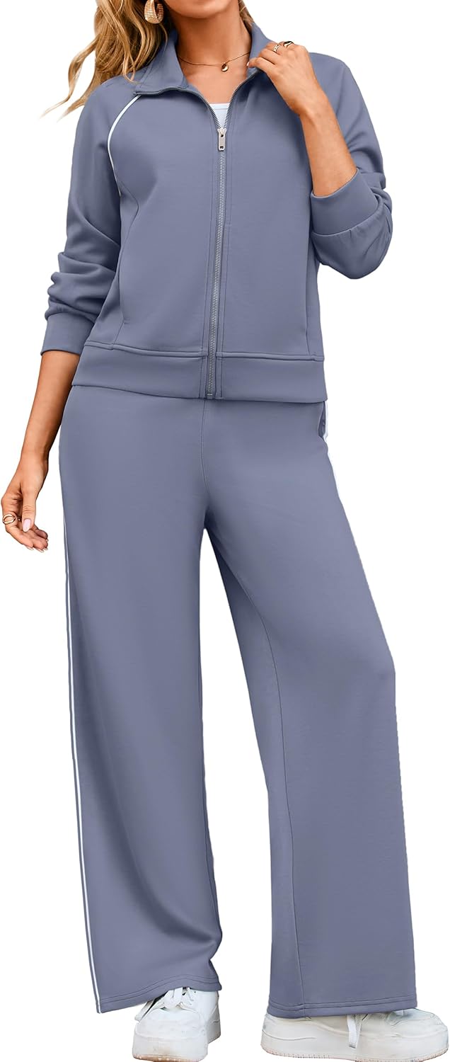 Glamaker Womens 2 Piece Sweat Sets Long Sleeve Zip Up Wide Leg Sweatsuits Travel Sets Athletic Track Suits Fall Outfits