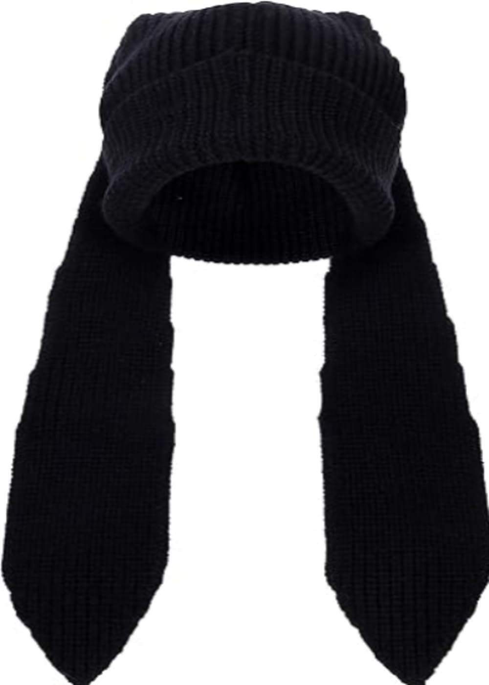 Geyanuo Bunny Hat Cute Y2k Beanie Knit Funny Rabbit Ear Beanie Warm Winter Hat for Women Halloween Hats Black
