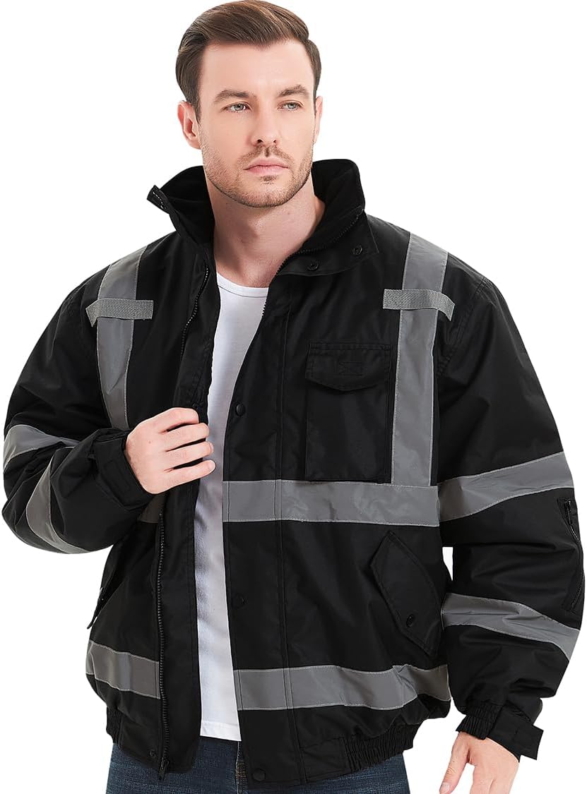 ProtectX High Visibility Waterproof Safety Jacket, Hi Visi Reflective Winter Construction Bomber Jacket for Men and Women