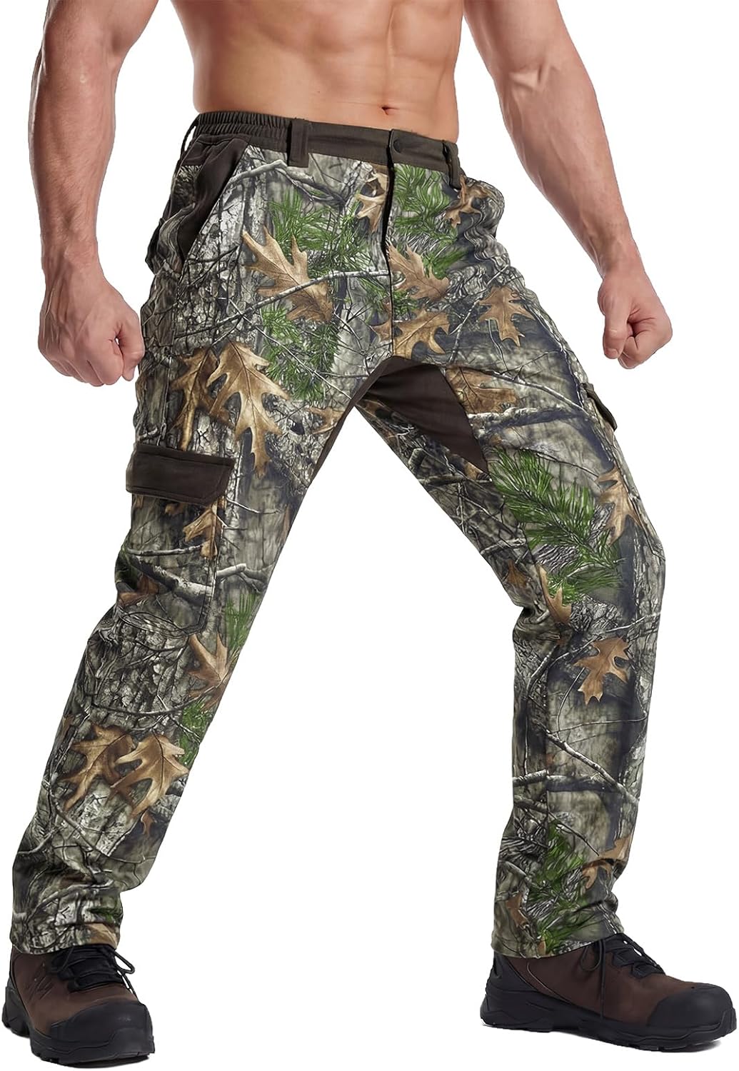 LOOGU Men's Fleece Lined Insulation Camo Hunting Pants Windproof Water-Resistant Softshell Tactical Pants for Men