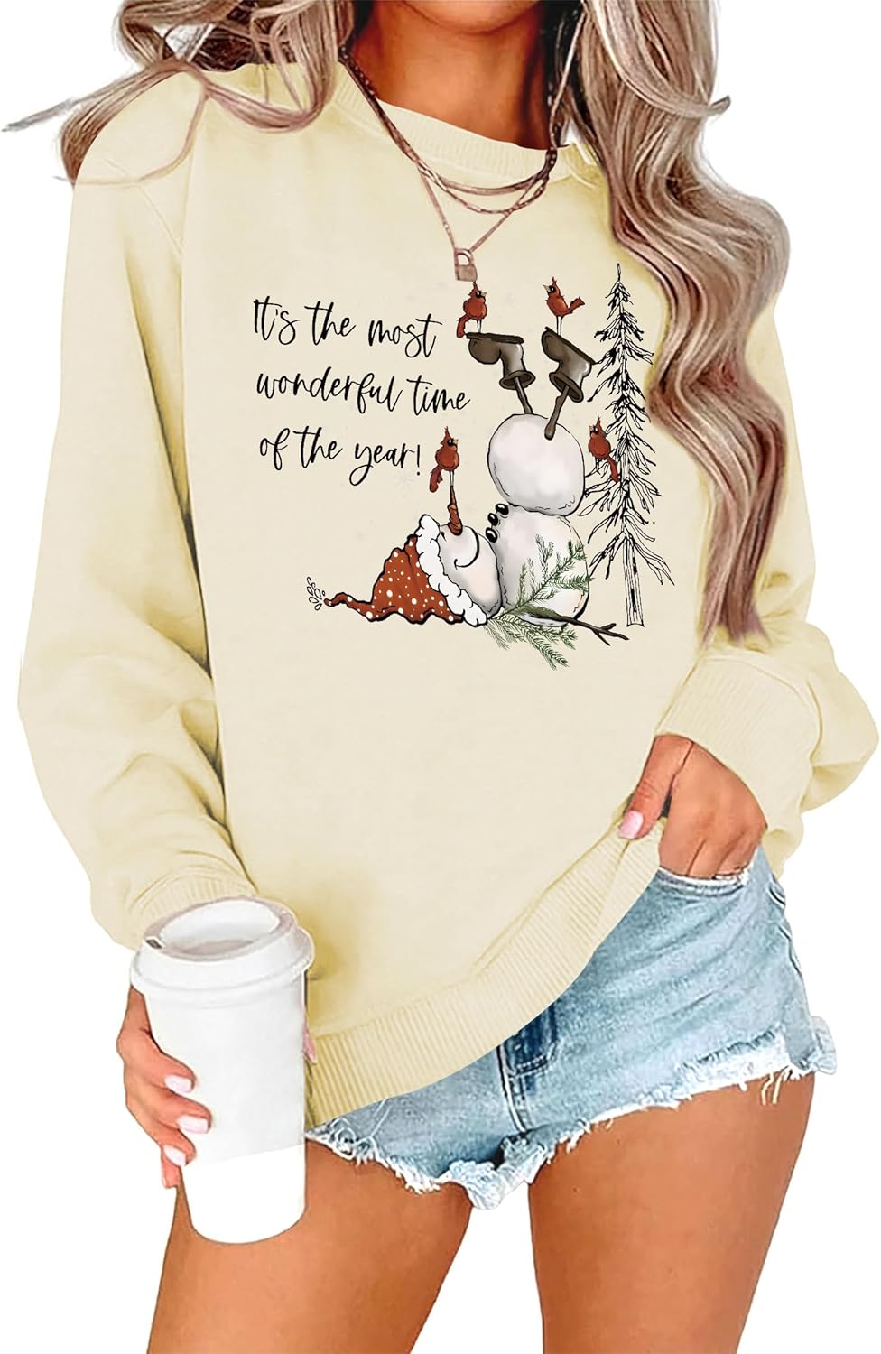 OUNAR Christmas Sweatshirts For Women Merry Christmas Shirt Snowman Crewneck Long Sleeve Lightweight Xmas Holiday Tops