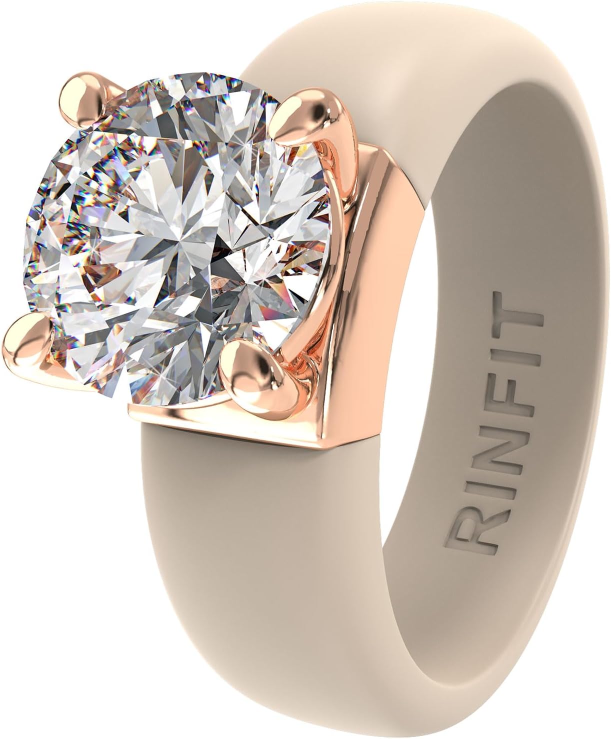 Rinfit Silicone Ring with Stone - Round Cut Cubic Zirconia Solitaire Ring for Women - Rubber Wedding Bands - Patented Design