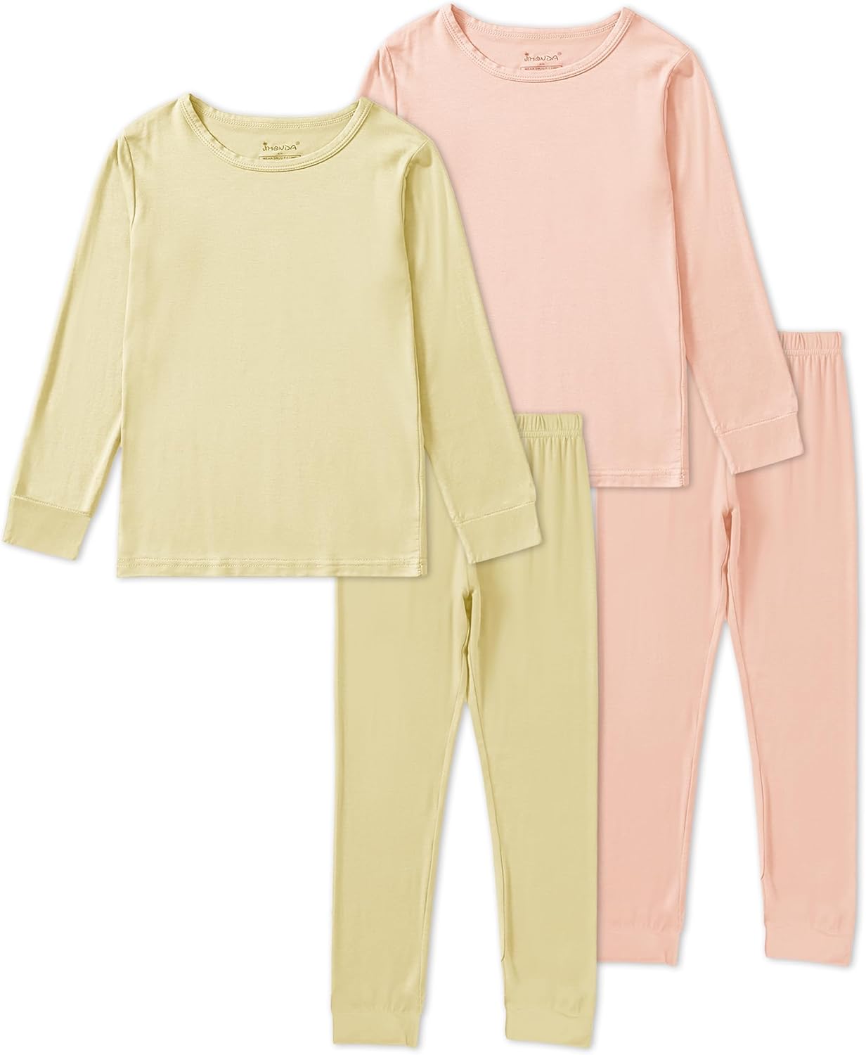 Jimonda Baby Boys Girls Pajama Sets Toddler Long Sleeve Sleepwear Sets Rayon from Bamboo Pajamas Sets 4pcs PJs 18M-8Y