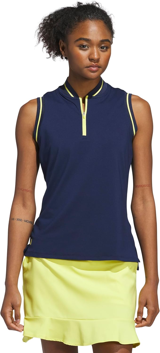 adidas Womens Ultimate365 Quarter-Zip Sleeveless Polo Shirt