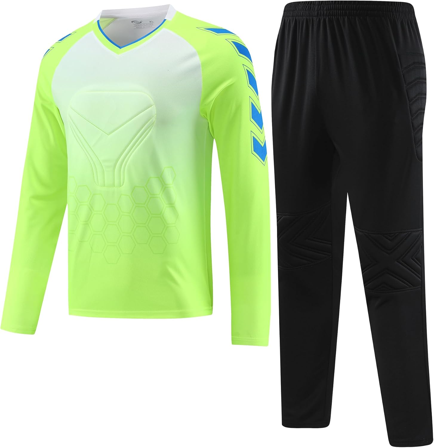 Hiheart Boys Goalkeeper Soccer Jersey and Pants Set Padded Long Sleeve Goalie Shirt