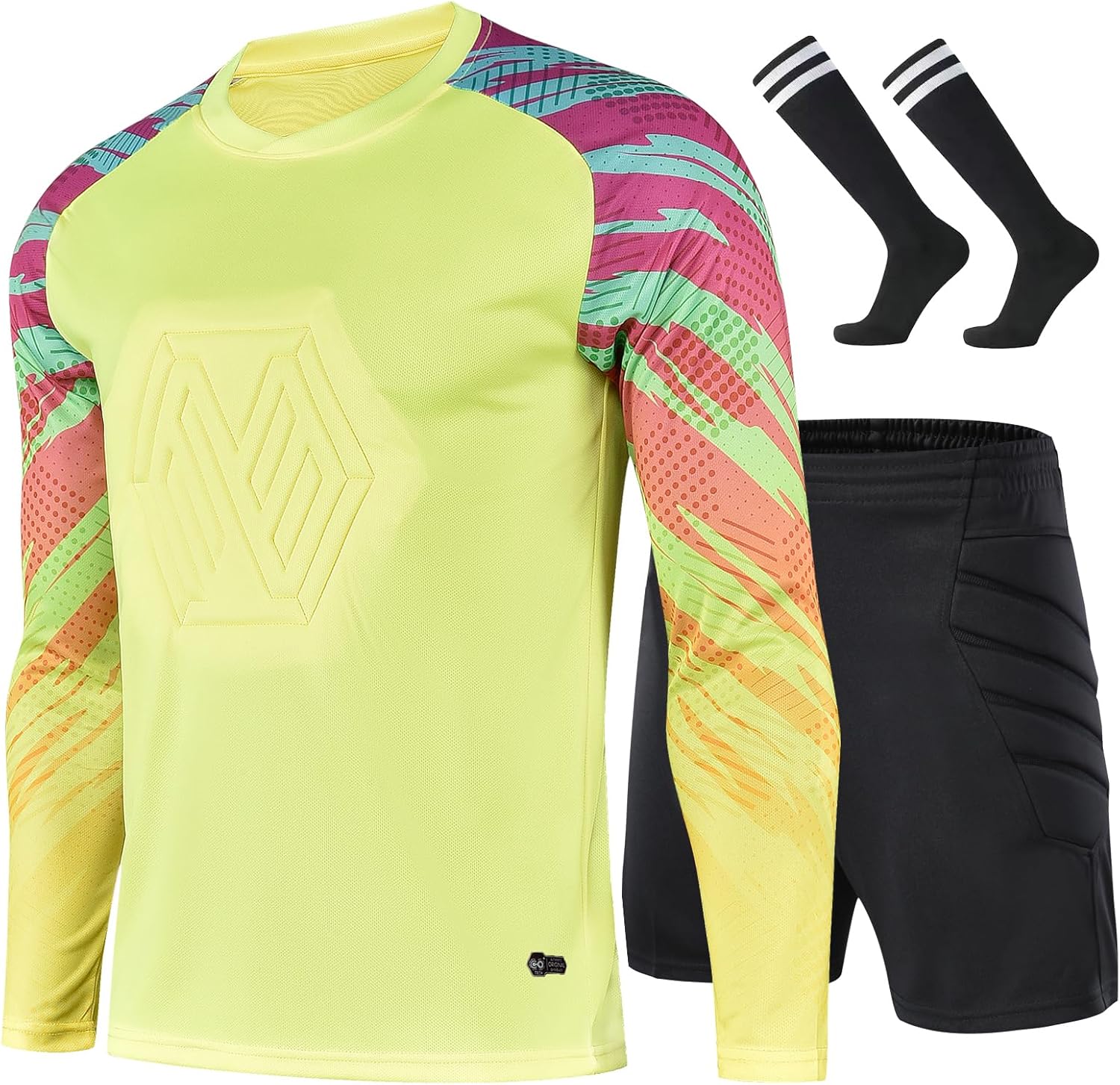 Soccer Goalie Jersey and Shorts Set for Boys,Long Sleeve Goalie Uniform Kit for Kids and Youth