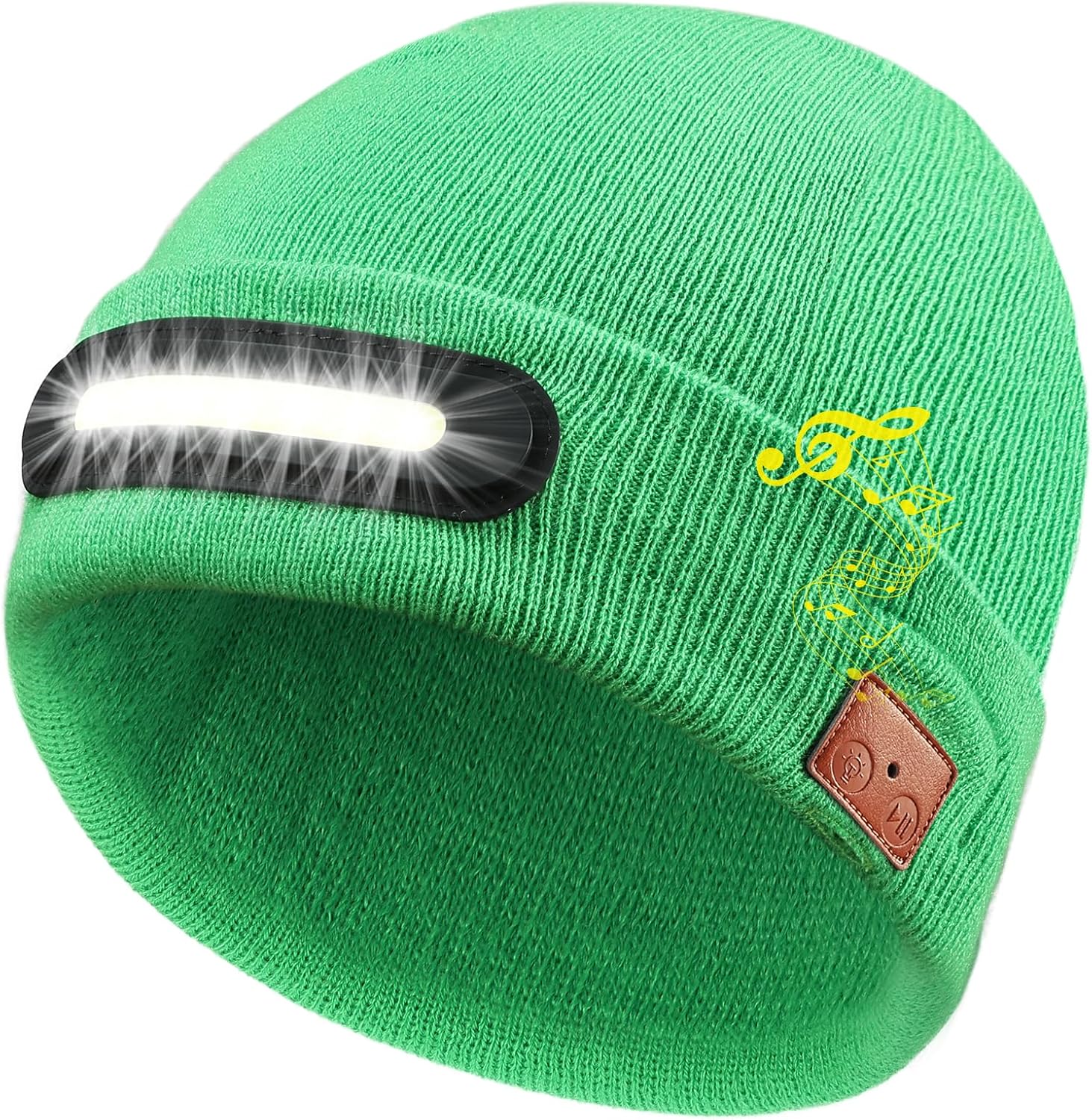 RANCOVY Bluetooth Beanie with Light, Musical Knit Hat with Wireless Headphone, LED Beanie with Bluetooth for Men Women