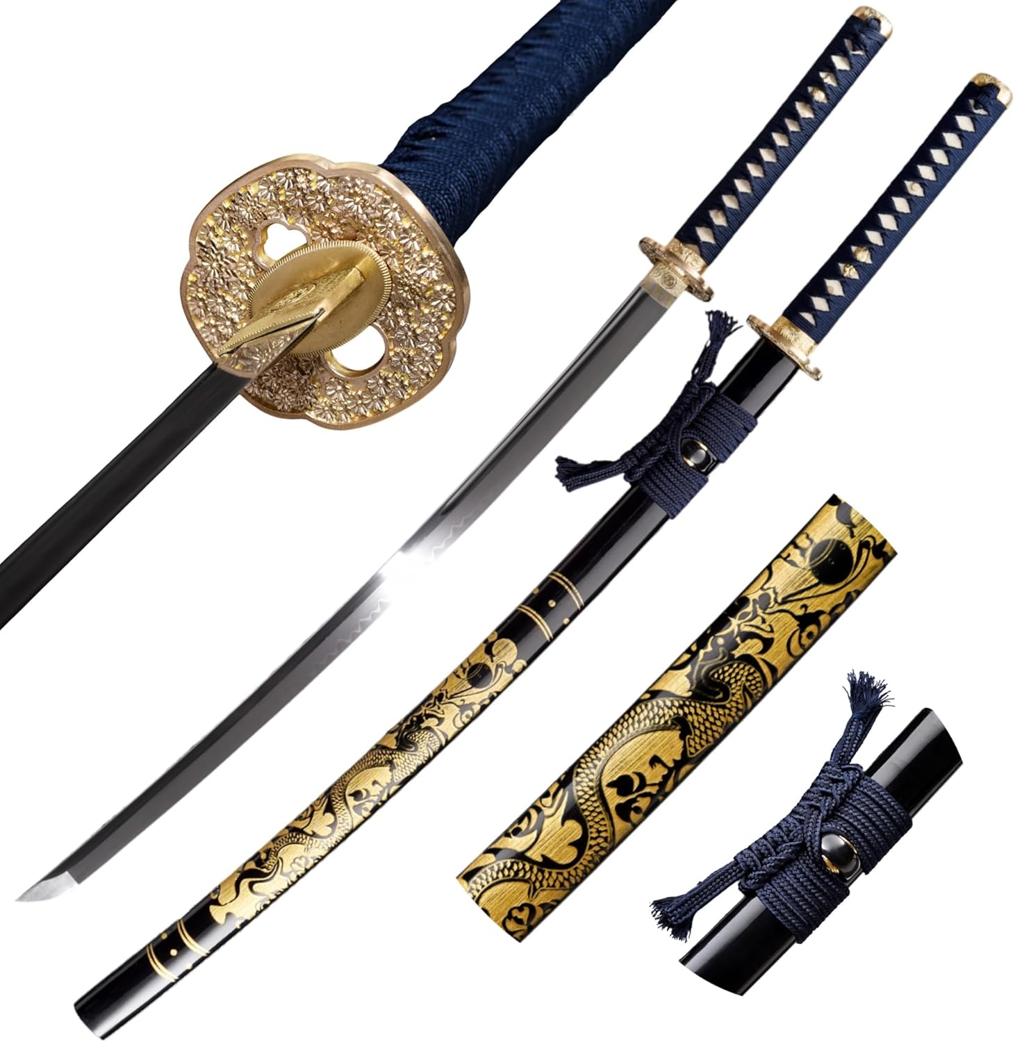 41'' T10 Steel Clay Tempered Katana, Razor Sharp Edge Handmade Japanese Samurai Sword, Full Tang Blade Katana Real Hamons for Martial Arts & Collectors