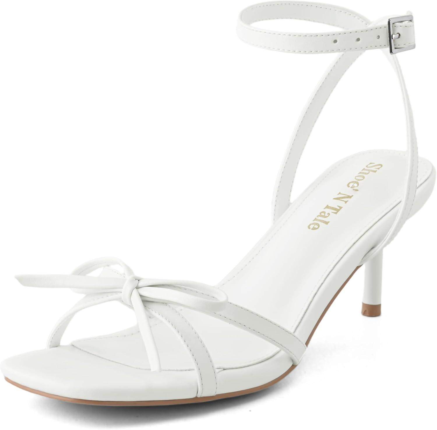 Shoe'N Tale Women's Kitten Heels Bow Strappy Heeled Sandals Square Open Toe Fashion Dressy Wedding Party Shoes