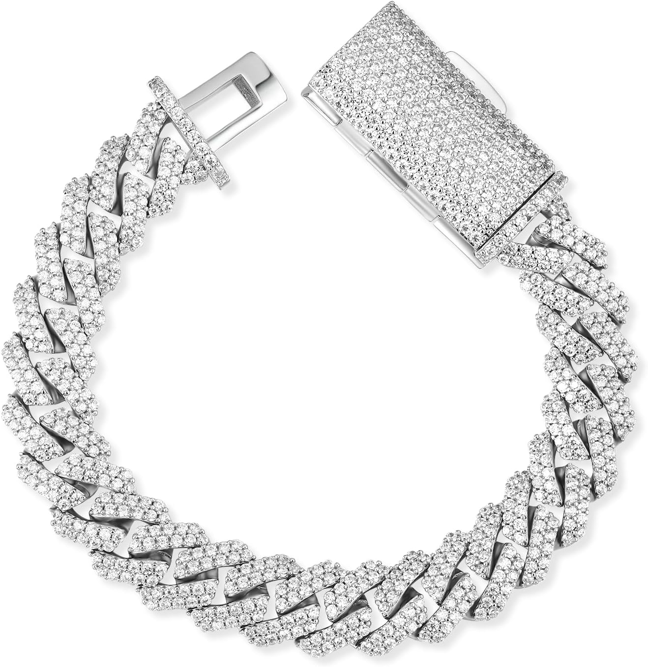 Gemsme Cuban Bracelet For Men Women, Hip Hop Heavy 18k Gold Plated Full Iced Out Miami Cuban Link Chain Bracelet
