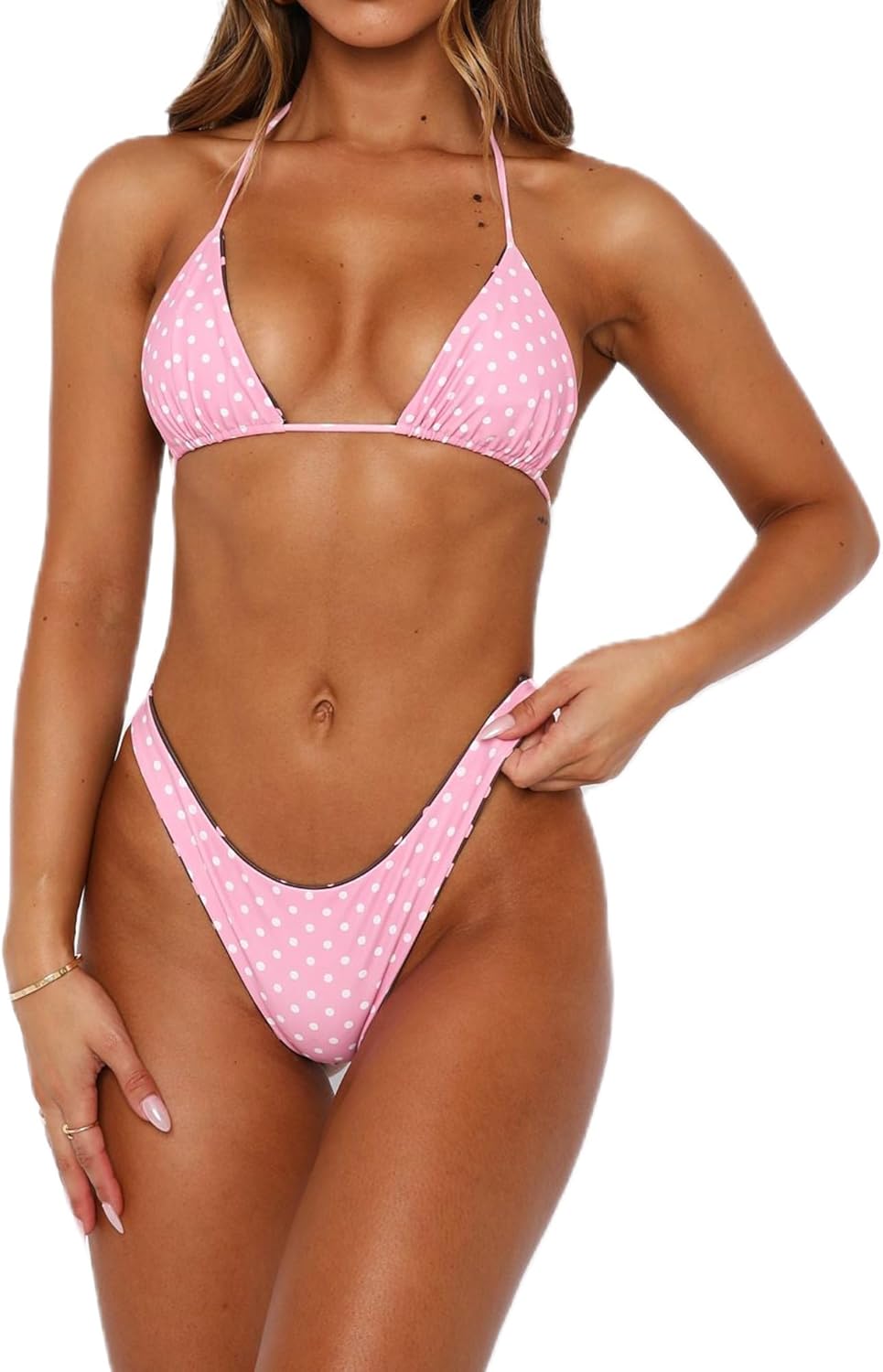 Sunloudy Women's Triangle Bikini Swimsuits Sexy Lace Trim Halter Cheeky Triangle Thong 2 Piece String Bikini Sets