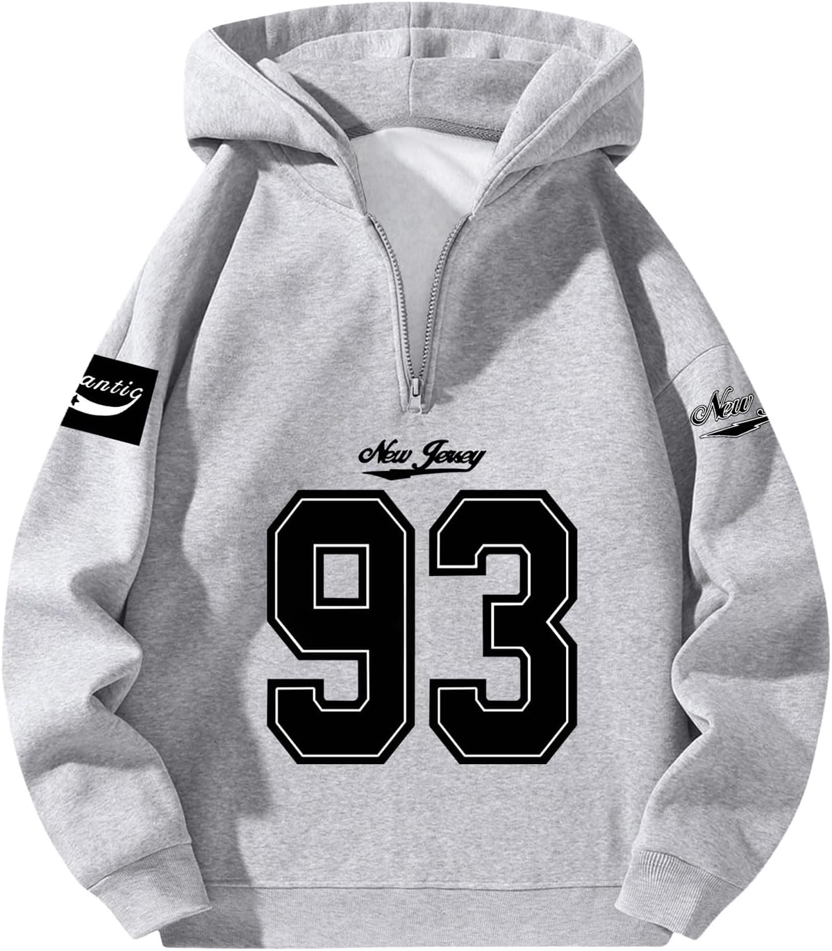 Verdusa Men's Zip Up Hoodie Jersey Shirt Long Sleeve Hooded Sweatshirt