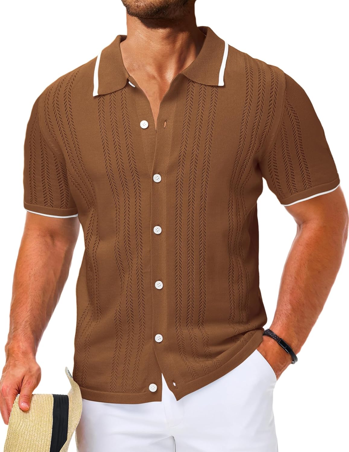 LETSEE Linen Shirts for Men Short Sleeve Blouse Button Down Dress Untuckit Shirts Beach Summer Wedding Hawaiian Outfit