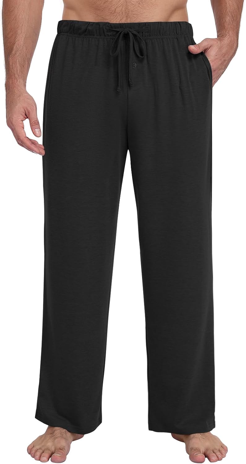 Mens Pajama Pants Soft Lounge Sleep Pants with Pockets Casual Pj Bottoms with Button Fly and Drawstring