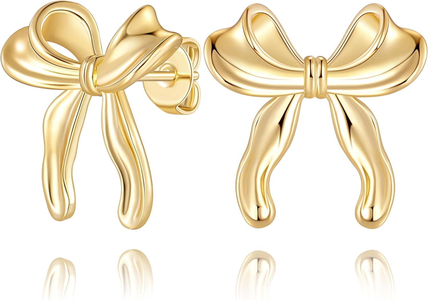 Gold Earrings for Women 14K Gold Studs Earrings for Women Stud Bow Earring for Womens Stud Sweet Bows Design with a Playful Twist Dainty Bow Studs Earring for Womens 21mm