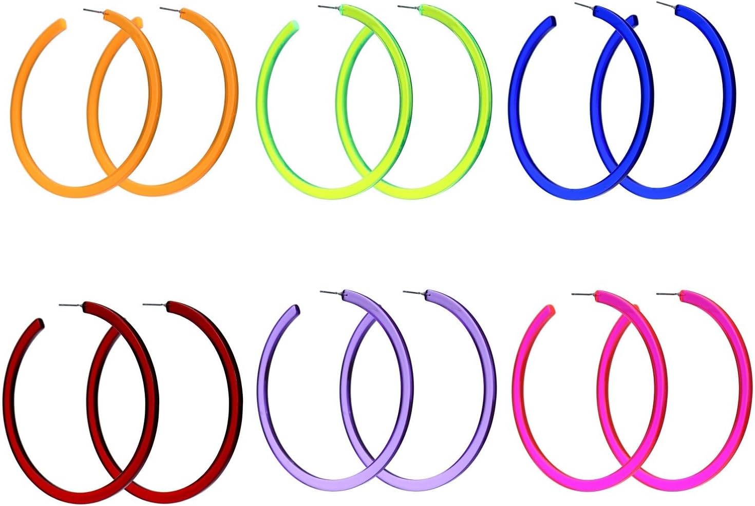 Colorful Big Hoop Earring Acrylic Open Large Hoop Earrings C Shape Trendy Chunky Earrings 80s 90s Retro Lightweight Statement Ear Jewelry Earring For Women