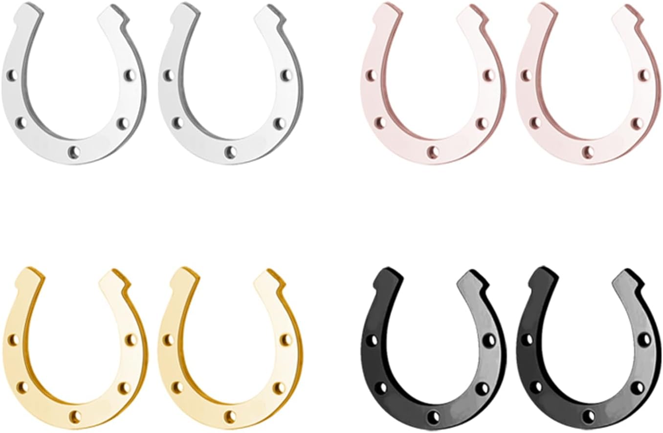 Dreuyet 4 Pairs Stainless Steel Horseshoe Stud Earrings Cute Minimalist U-Shaped Horseshoe Horse Stud Earrings Horse Animal Lover Jewelry Gifts