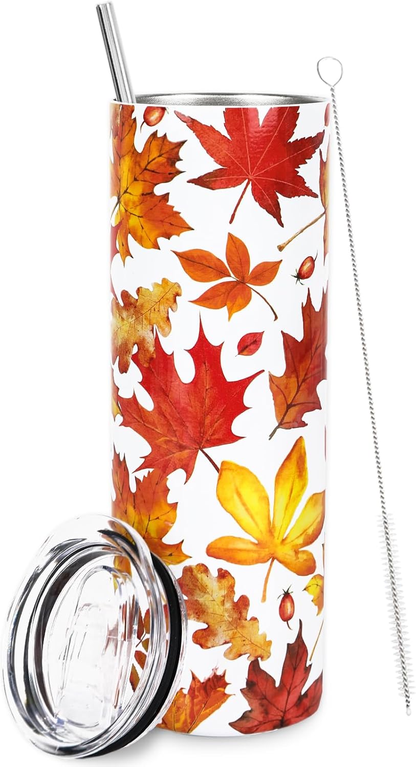- You Will Get - 1pcs fall theme tumbler, 1pcs lid, 1pcs straw and 1pcs cleaning brush, a complete and practical set for you to use. The capacity of this tumbler is 21oz, suitable for any drinks.
