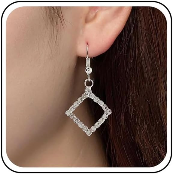 Andelaisi Boho Crystal Square Drop Earrings Silver Rhinestone Square Dangle Earrings Vintage Rhinestone Square Hook Earrings Geometric Cz Square Earrings Jewelry for Women
