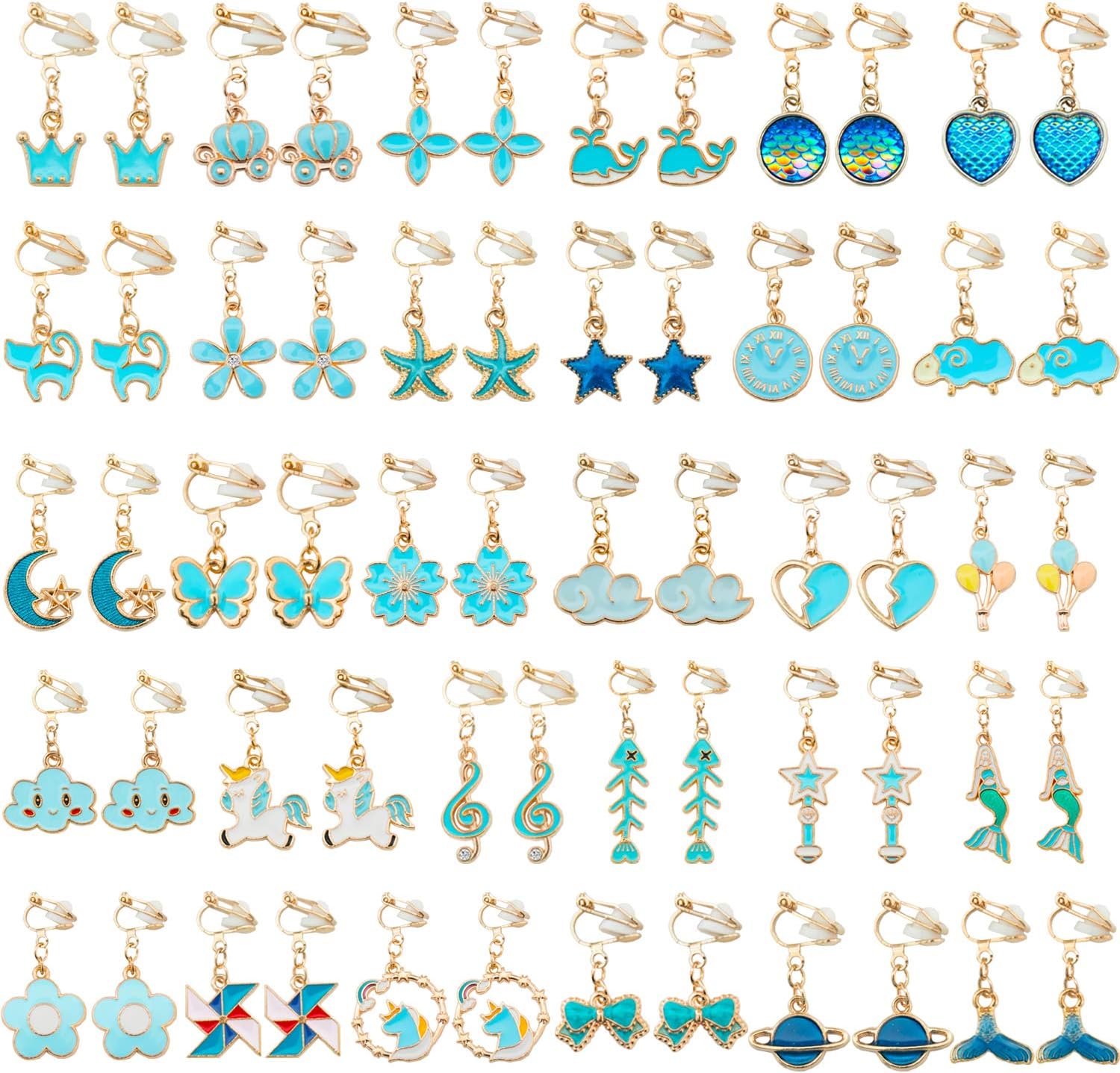 NEWITIN 30 Pairs Clip on Earrings for Women Hypoallergenic Earring Dress up Jewelry Non Piercing Earring Set Clip on Cute Pink Earrings for Women