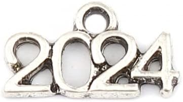 PEPPERLONELY 50PC 2024 Antiqued Silver Alloy Year 2024 Message Charms Pendants 16x9mm
