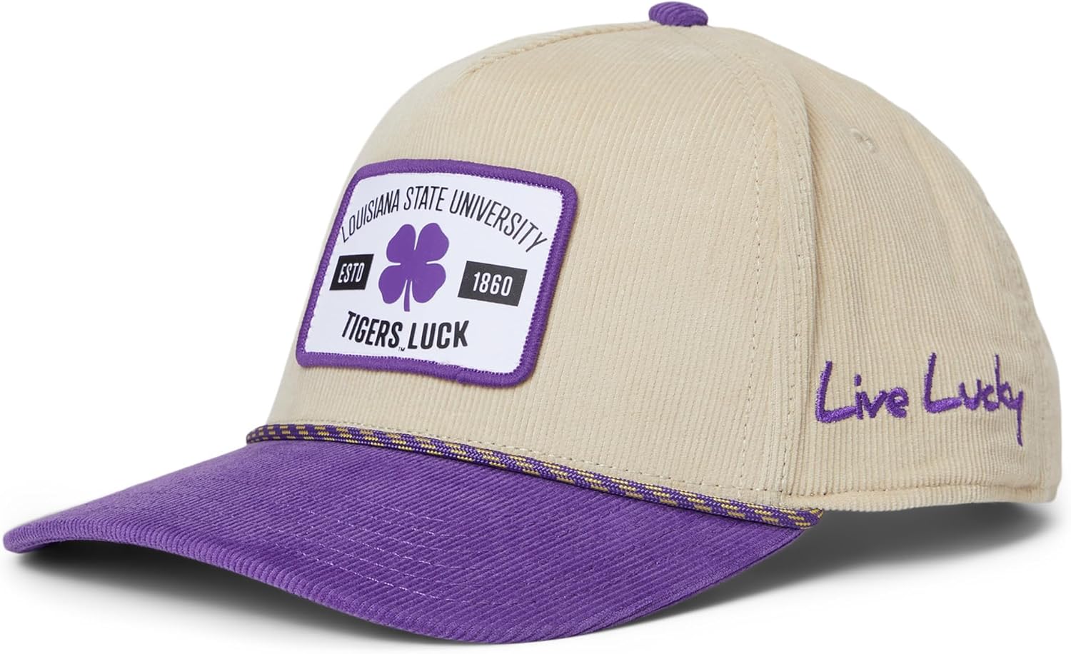 Black Clover Standard LSU Legacy Adjustable Snapback Hat, Natural/Purple/Corduory w Rope HD Patch