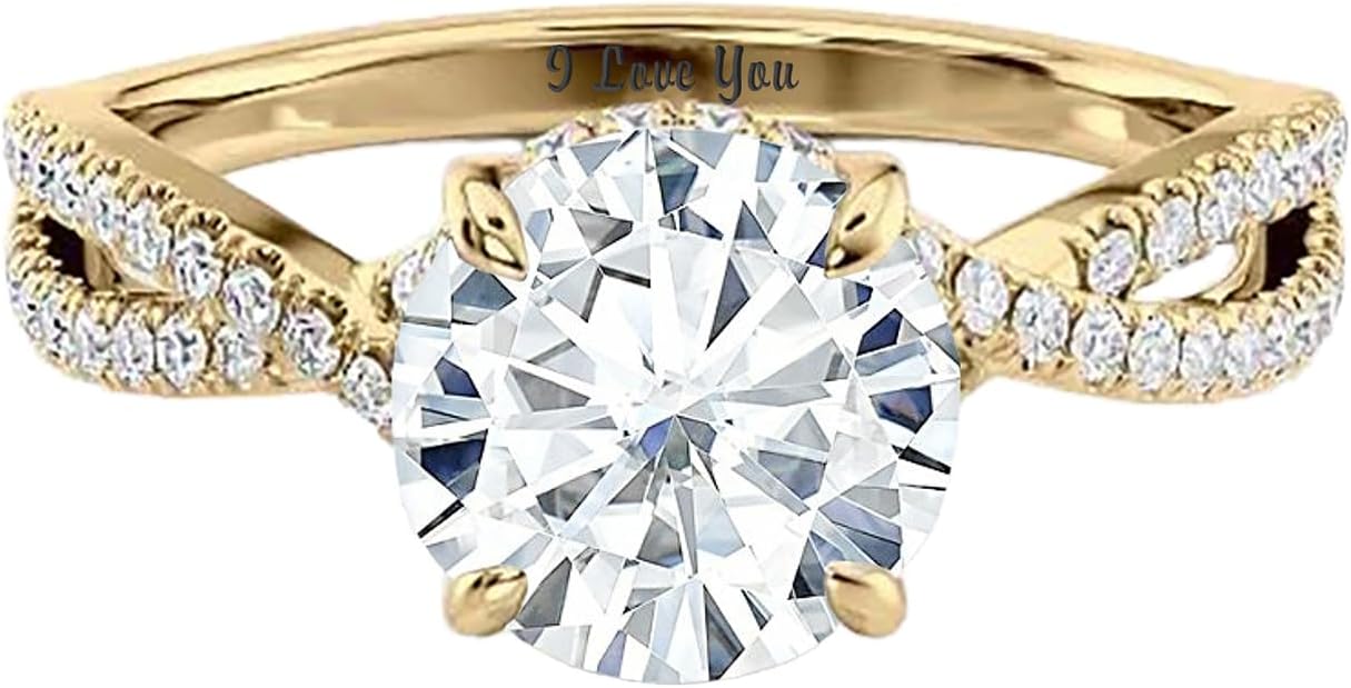 SISGEM 10K 14K 18K Solid Gold Moissanite Engagement Rings Bridal Set for Women, 1-3 Carat Round Twin Rows interlaced Moissanite Wedding Band Set Promise Rings with Pave-set Stone for Her