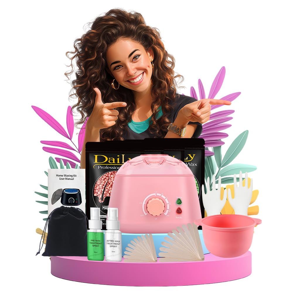 Wax Warmer Kit for Hair Removal - Hard Wax Kit for Sensitive Skin with Silicone Liner, 4 Bags Wax Beans - For Women Men, Face, Bikini, Brazilian, Body, Legs, Home Salon. (PINK)