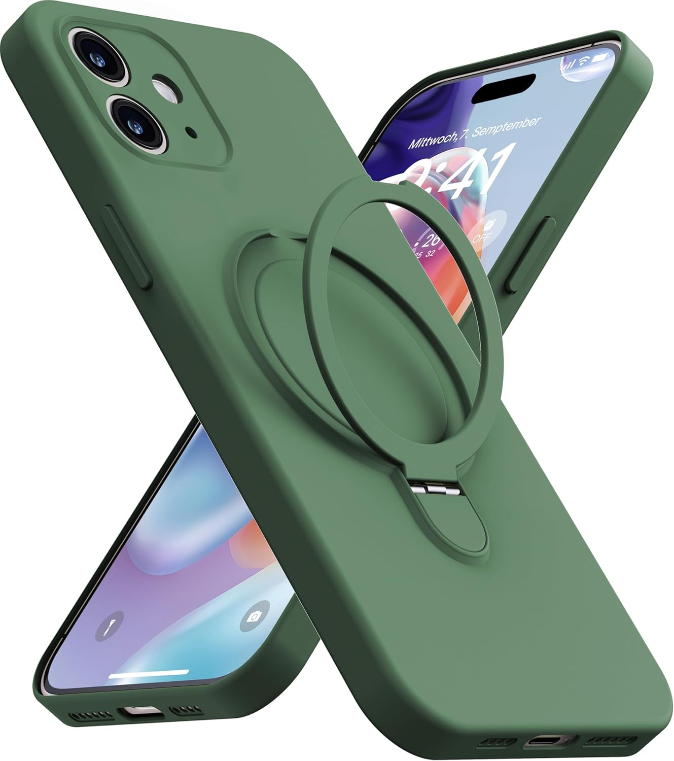 ![Magnetic Stand for iPhone 12 Case, Liquid Silicone Case, [Compatible with MagSafe][Built-in Kickstand&Ring Holder] Anti-Scratch Soft Microfiber Lining, Midnight Green - Image 2](https://m.media-amazon.com/images/I/81T-u+ojcSL._AC_SL1500_.jpg)