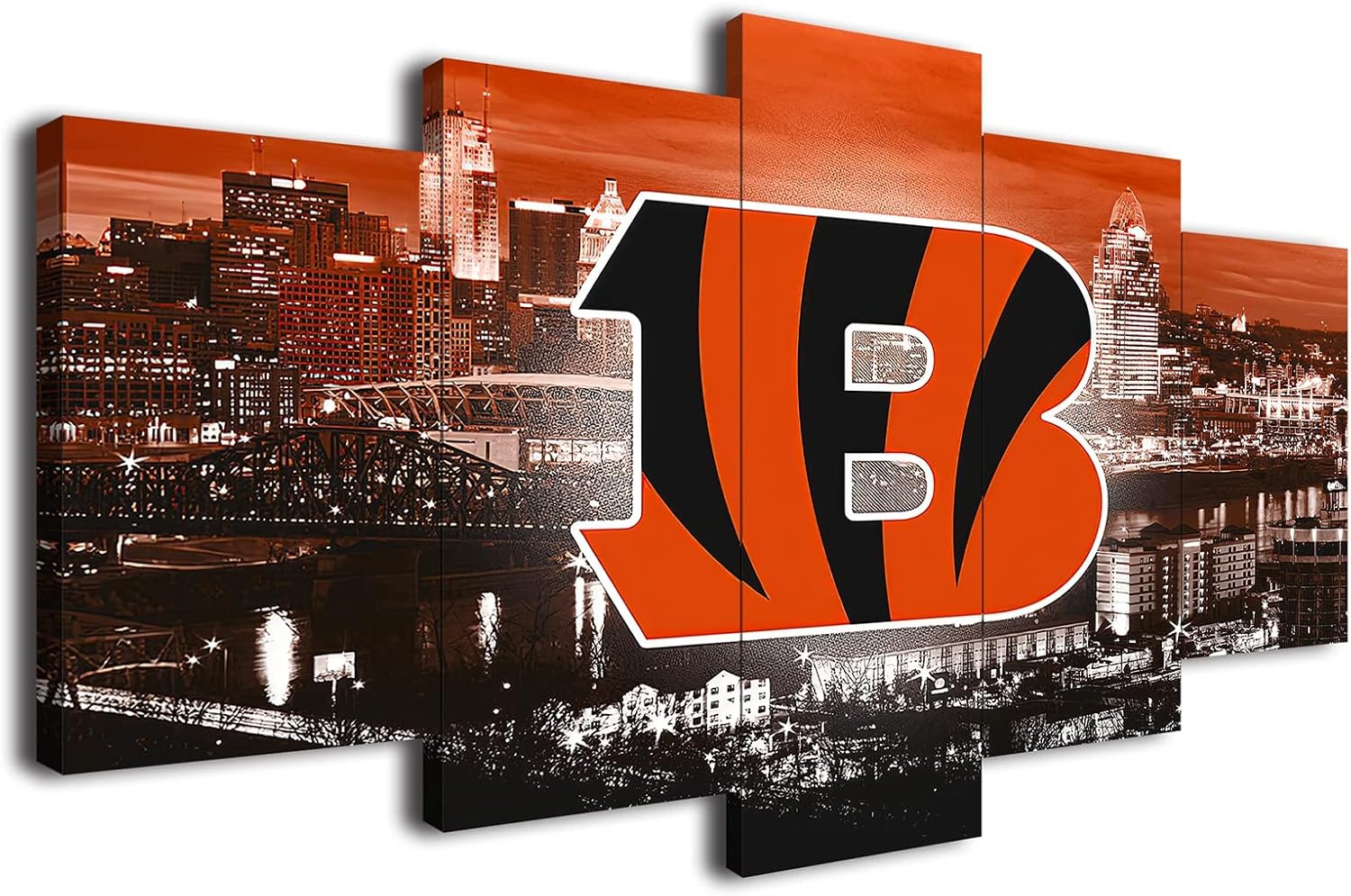 Cincinnati City Bengals American Football Poster Sports Pattern Canvas Wall Art Print Artwork Home Decor Large Frame Painting Ready to Hang 5Pcs (Framed,20x30x2pcs+20x45x2pcs+20x60cmx1pcs) Black