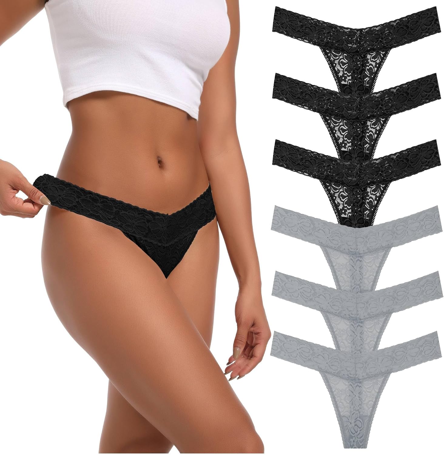 High Waist Thong Underwear Women Ribbed Cotton Tummy Control Thongs Panties Size S-4XL Pack 6