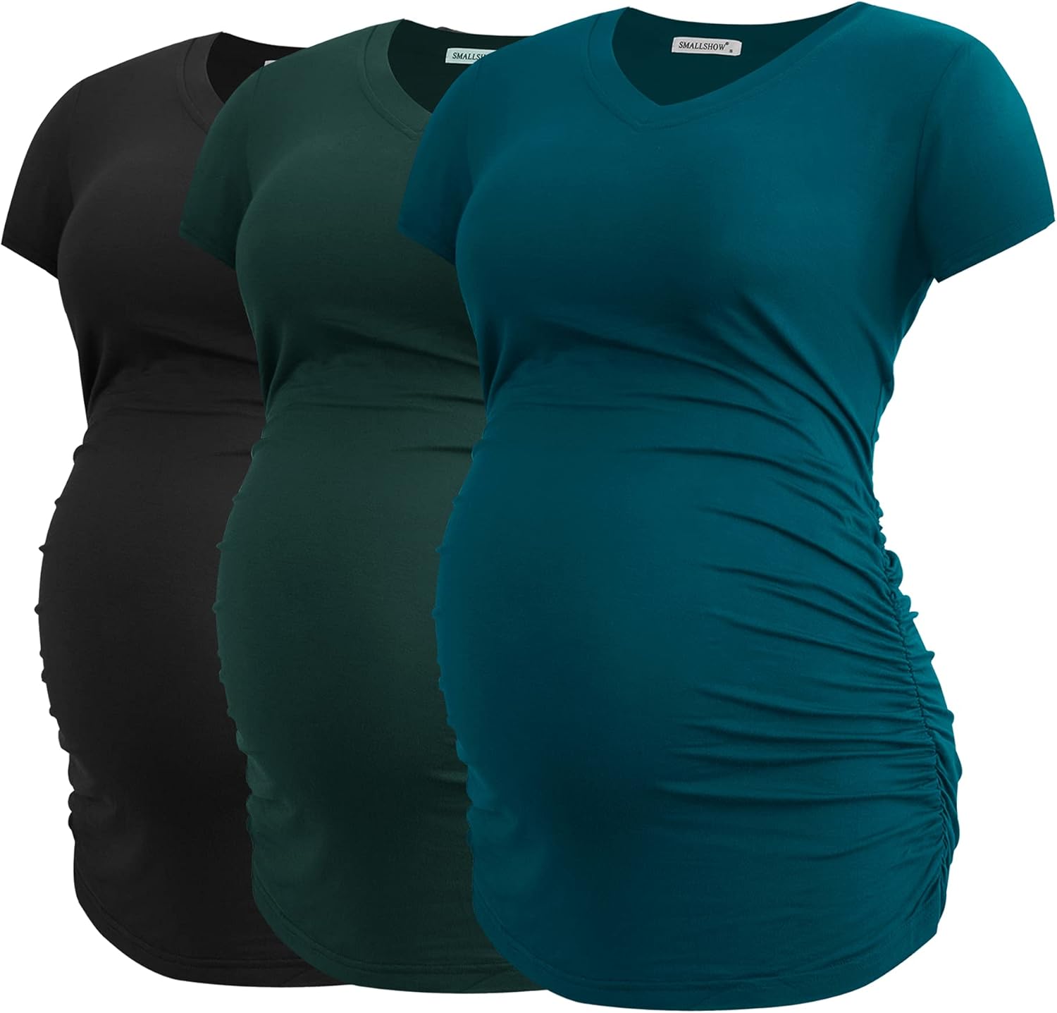 Smallshow Women's V Neck Maternity Clothes Tops Side Ruched Pregnancy T Shirt