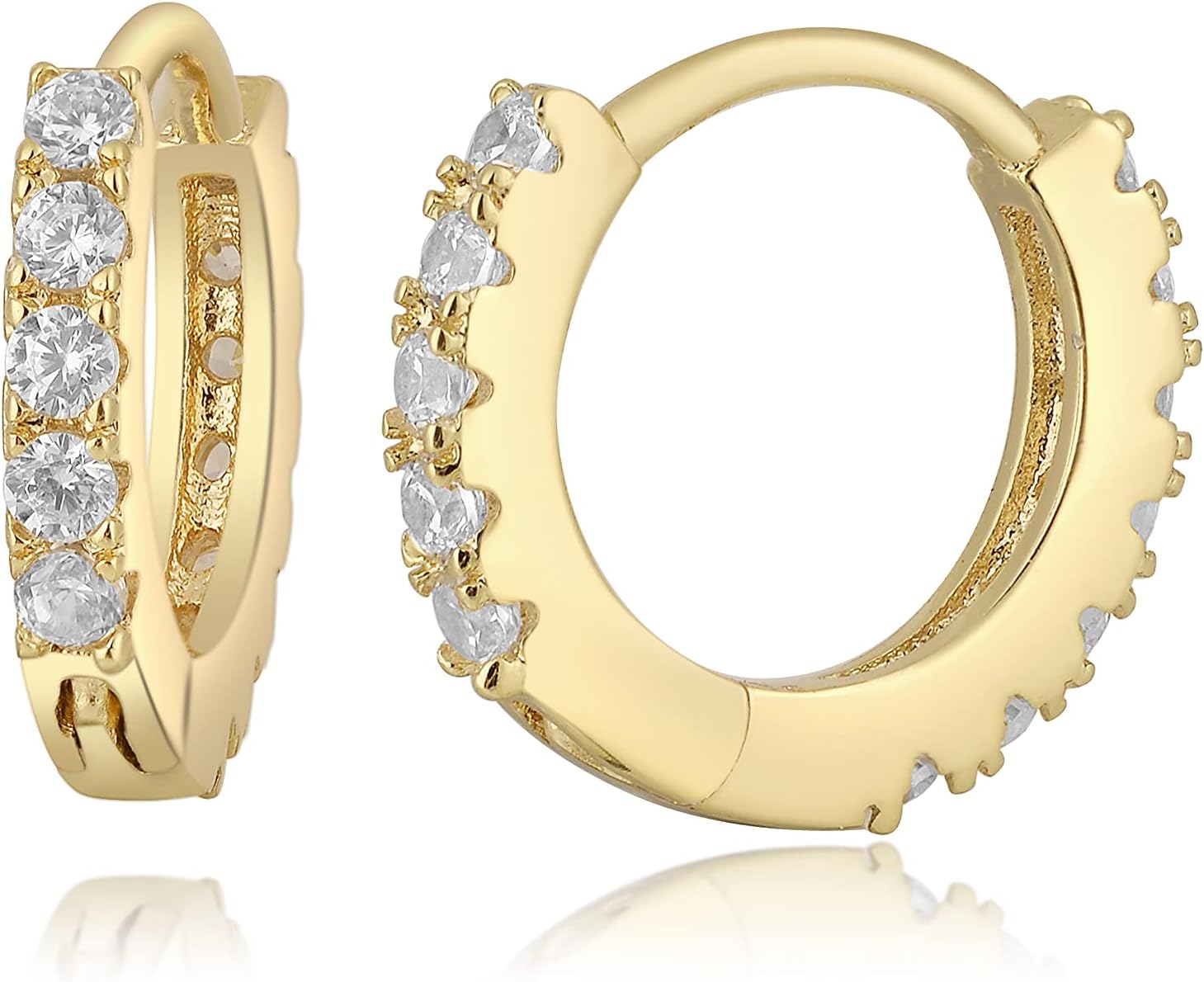 Tiny Hypoallergenic 14K Gold Plated Cubic Zirconia Cuff Huggie Stud,Small Simple Lightweight Double Piercing Helix Hoop Earrings For Women