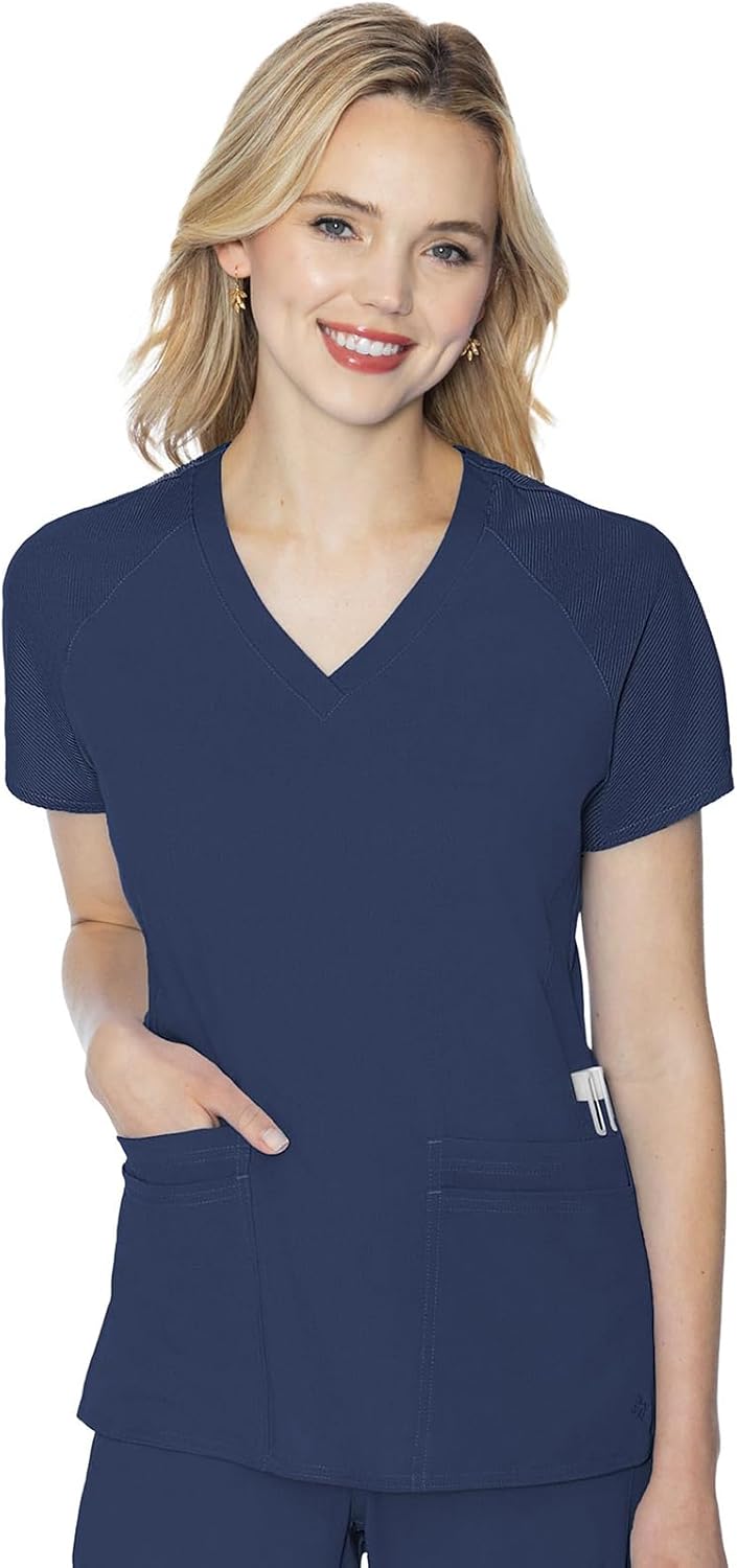 Med Couture Women's Scrub Top, Raglan Sleeves for Modern Fit, 6 Pockets 2-Way Stretch, Durable & Breathable Fabric - MC7425