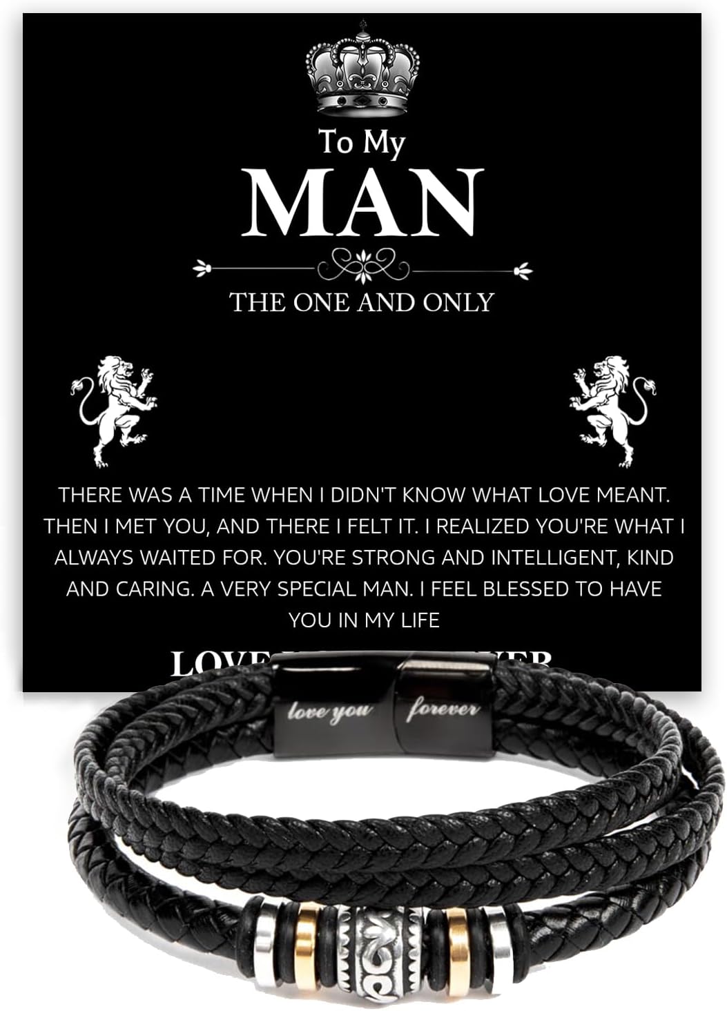 To My Man Bracelet Gifts, Romantic Gift For Him Husband Boyfriend Sentimental, Husband Boyfriend Mens Braided Leather Love You Forever Bracelets Valentine Birthday Christmas Gifts for Him