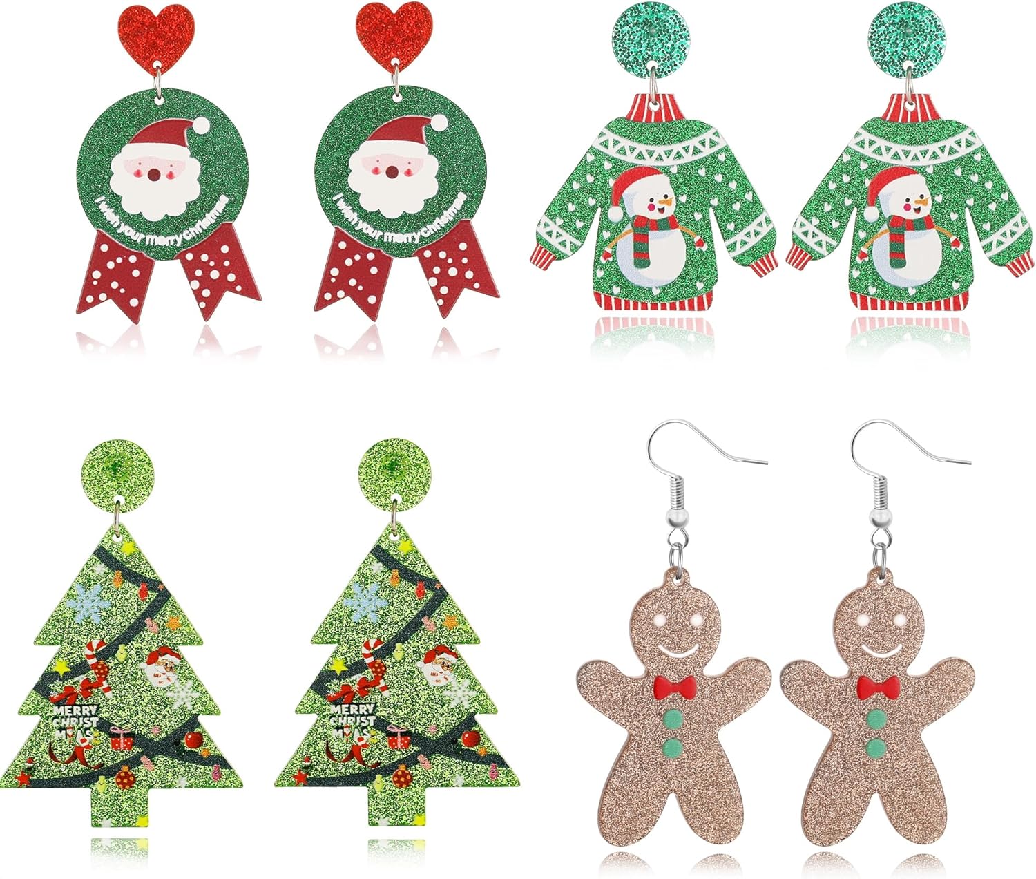 Christmas Earrings Bow Colorful Light Bulbs Rhinestone Earrings Gingerbread Man Xmas Tree Reindeer Christmas Holiday Jewelry Gift