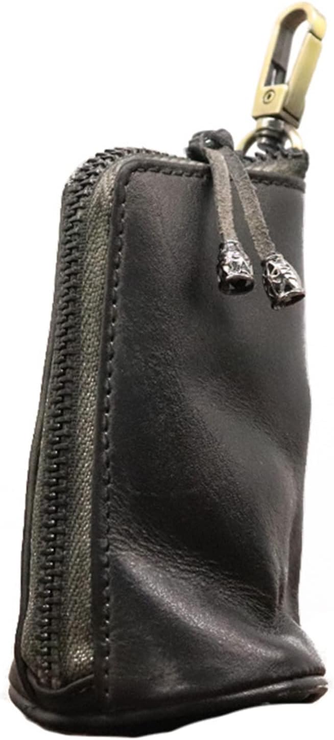 Medieval Leather Zipper Coin Pouch, Genuine Cowhide Handcrafted Coin Organizer Change Holder Keychain Coin Purse for Men & Women (Black)
