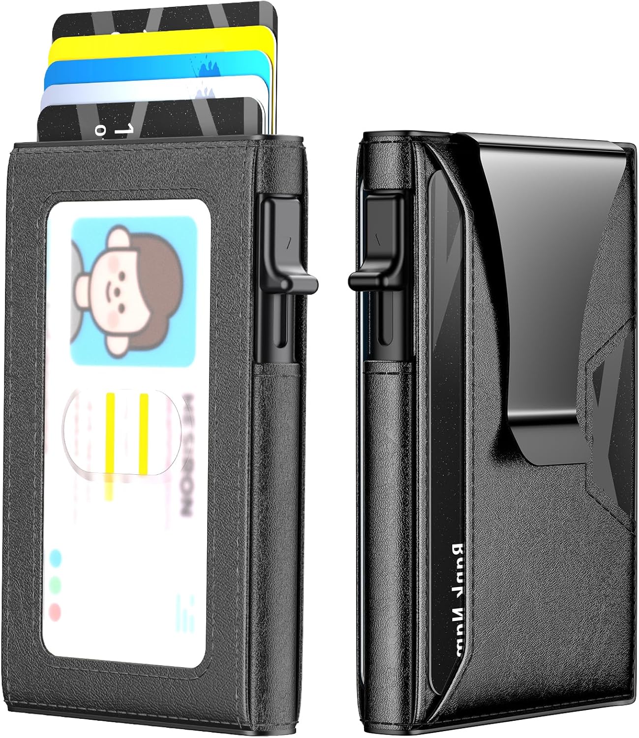 Wallet for Men Slim Minimalist Pop-up Smart Holds 5-6 Cards - RFID Blocking Metal with Money Clip, Credit Card Holder & ID Window,Business Card Cases, men accessories (Black)