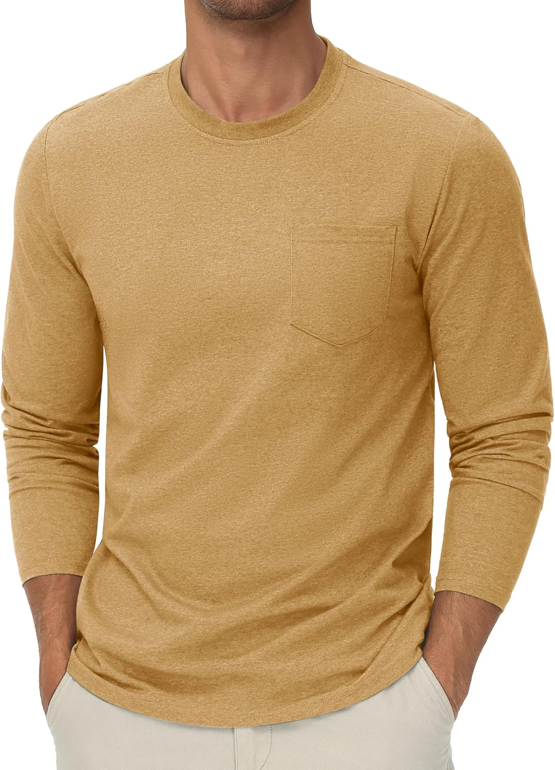 Cotrasen Men's Long Sleeve Tee Shirts Cotton Crew Neck Pocket T Shirts Moisture Wicking Soft Casual Basic Tshirts